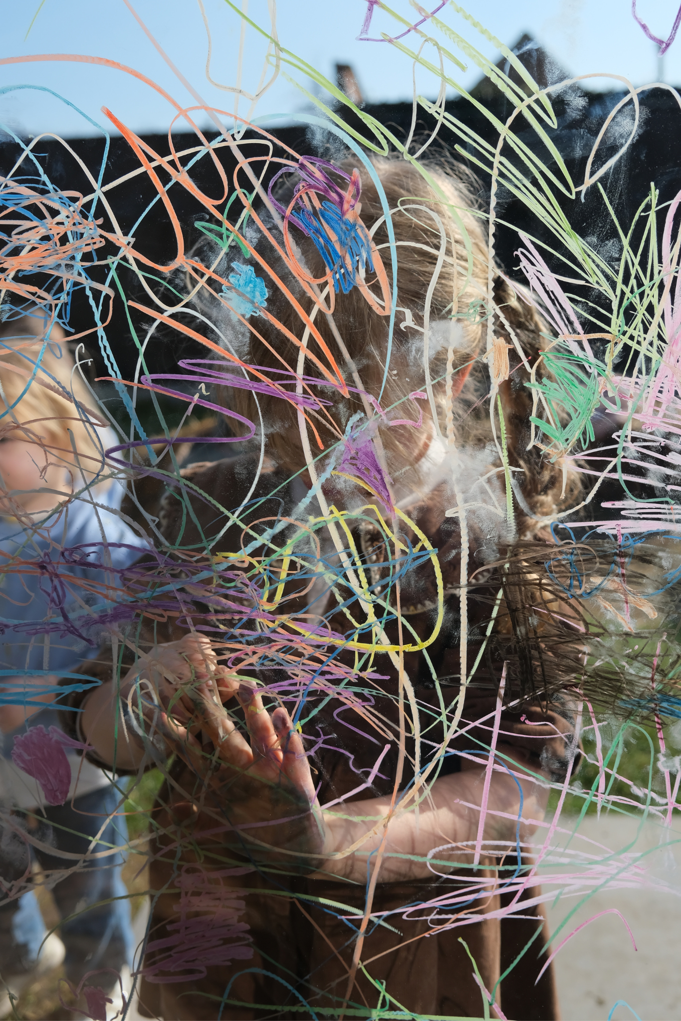 Tijdens mijn workshops gebruik ik ze vaak op ramen, meestal aan de buitenkant. Dat zorgt voor een meer ontspannen sfeer voor jou als volwassene, omdat de kans kleiner is dat er — ondanks dat het afwasbaar is — toch ergens op getekend wordt waar je het liever niet hebt. Bovendien nodigt het kinderen uit om vrijer te tekenen en te experimenteren. Ook gebruik ik ze in combinatie met de Studio SOL glazen tekenraampjes: ideaal om op een compacte manier creatief aan de slag te gaan.