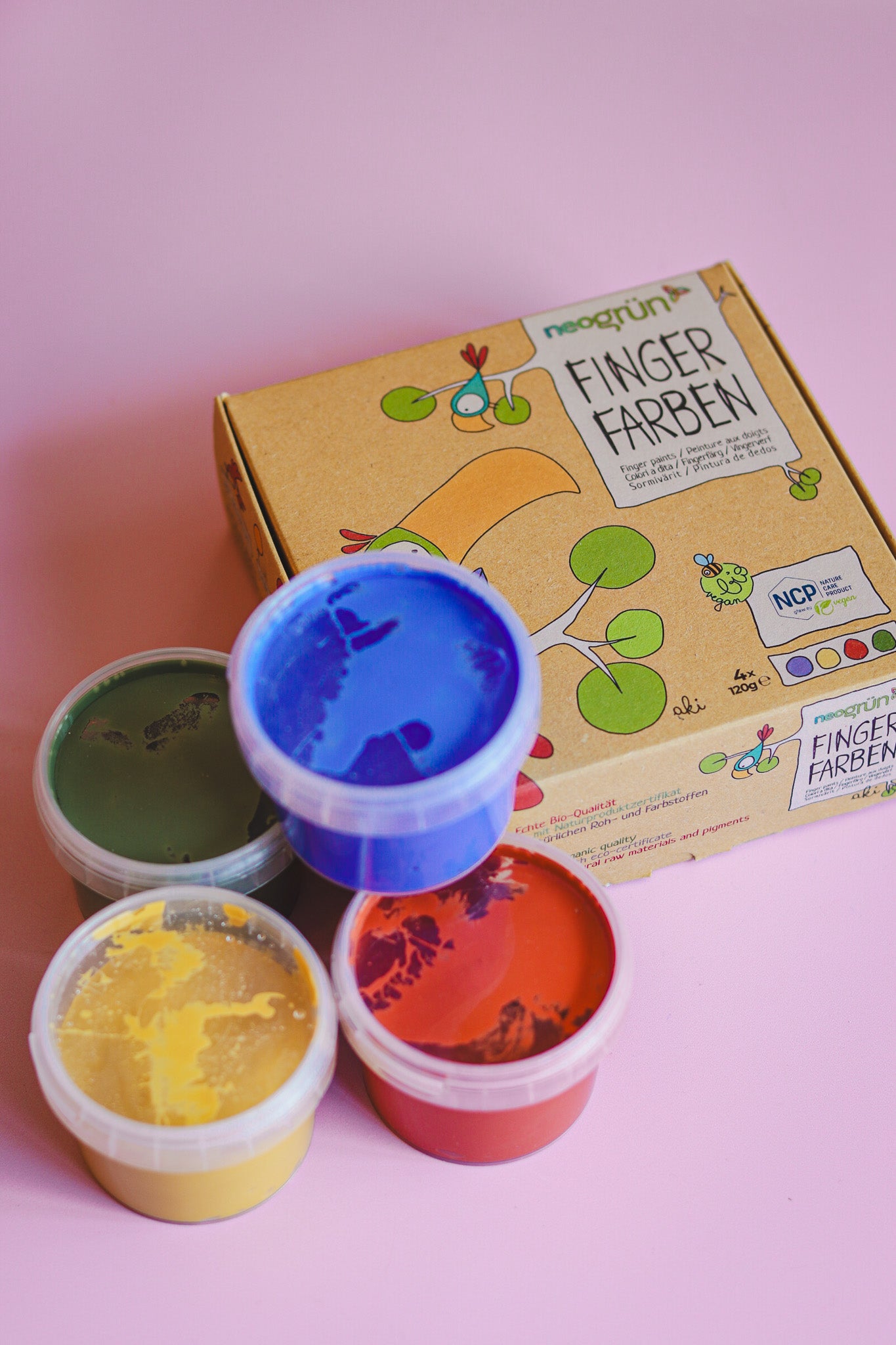 Zijn jouw kinderen echte kunstenaars die graag met hun hele handen, lijf (en soms zelfs hun mond) ontdekken? Dan is de ecologische Neogrün vingerverf perfect. Gemaakt van volledig duurzame, veilige ingrediënten — dus geen probleem als er per ongeluk eens een beetje geproefd wordt.